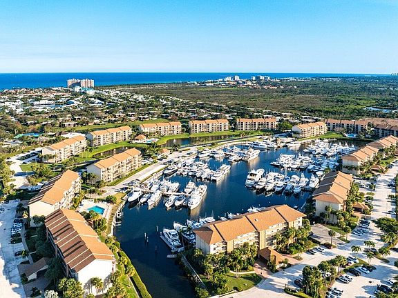 Experience waterfront living at its finest in this beautifully appointed condo overlooking The Bluffs Marina, just minutes from Jupiter's stunning beaches. This immaculate unit boasts a coastal feel and has been lightly lived in as a seasonal retreat. A/C and water heater were replaced in 2017. It also features complete accordion shutters, recently replaced sliding glass doors for added peace of mind, solid wood doors, plantation shutters. Furniture is negotiable, excluding the nautical buffet chest. Enjoy breathtaking marina views and the ultimate Jupiter lifestyle. Marina at the Bluffs is conveniently located on the Intracoastal Waterway, 0.8 miles from the aqua blue Atlantic Ocean, and a short distance to a supermarket, pharmacy, restaurants, and more. Don't miss this rare opportunity!