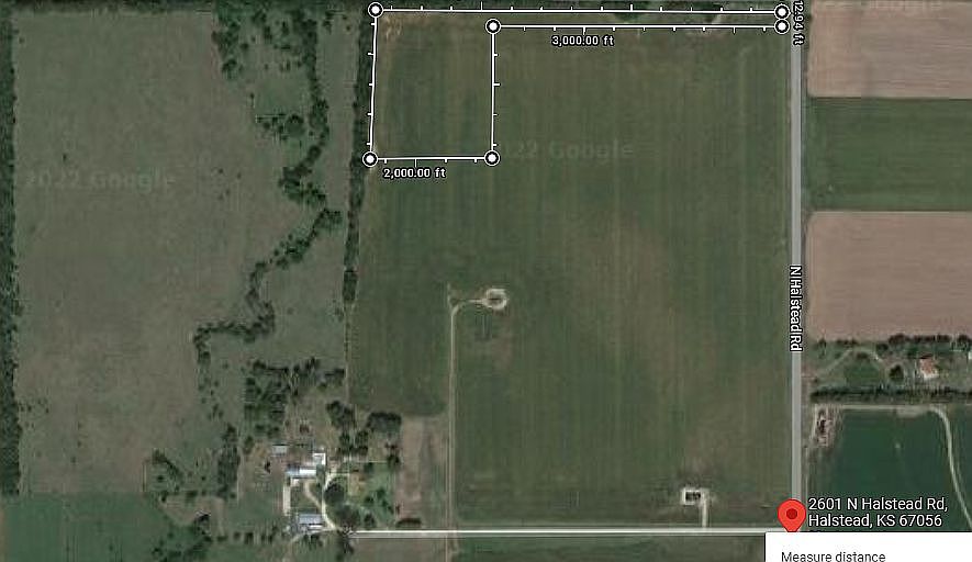 3 separate rural building sites located near 2601 N Halstead Rd, Halstead, KS are for sale. THERE IS NOT A HOUSE FOR SALE AT THIS LOCATION. THE HOUSE HAS ALREADY SOLD. The north parcel (flag shaped) is 5.001 acres and will go from the tree row along the north edge of the property and is staked wide enough for a driveway and then the building area to the west along the tree row in the corner of the field on the west end. This parcel is fairly flat, has black top frontage, and is pretty isolated with really nice sunrises over the tillable field. Utilities are expected to be in the frontage along Halstead Rd. There is natural gas available too at the existing home site, which is a huge bonus for a rural property and I would assume this new plot could hook up to it as well. Asking price is $85,000. The south parcel is slightly larger at 5.499 acres. This parcel is lower to the west along the trees and rises in elevation quickly as you go east. This plot would be great for a potential walkout basement facing west. Utilities again are expected to be along 24th St. This plot has frontage to the dirt road, but does sit a little further off the highway (1/4 mile) and has some character with the elevation changes and would make an awesome site to build your custom home. Asking price is $85,000. There is one larger plot of ground to the west side of the property that is not surveyed separately at this time. It will be surveyed before the sale closes. It will contain approximately 50-55 acres and all the pasture and tree area that are visible on Google Maps. This parcel is totally secluded and surrounded by trees and native grasses. It is beautiful and would have multiple pond sites that could be excavated as well as it sits on a hill and could have an awesome walk out basement overlooking your dream pond. Asking price is $550,000.