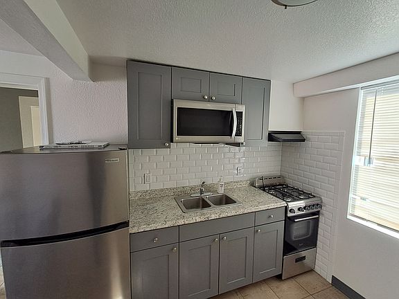 Freshly painted 1 bedroom with new carpet. Gas range and refrigerator included. Close to downtown dining and attractions. An easy walk to public transit. Brand new stucco and paint. Spacious, covered front patio. Unit features doubled pane windows to keep unit cool in summer and warm in the winter. Owner pays for electric, gas and water. Renter is responsible for installation and payment of phone/internet and cable if wanted. Non-refundable cleaning deposit and 1st month's rent due at move in. 1 year lease. No pets allowed without approval from management. No large or exotic animals allowed. No smoking allowed in the unit. Tenant is responsible to report any maintenance needs to management. Tenant will be responsible for changing air filter monthly.
