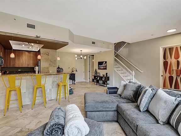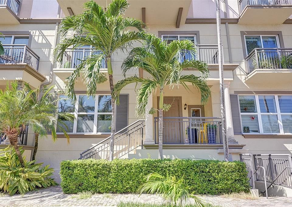 Rare east facing townhome located in Wilton Station. A gated pet friendly community with dogs up to 75 lbs each (non-aggressive). Two bedroom, flex den-office with two and a half baths. Stainless steel appliances, and granite countertops. Underground parking space. New AC, washer, dryer, dishwasher and water heater. Custom Hunter Douglas window treatments. Balconies off each bedroom. Retractable 'Phantom' screens off front door and sliding glass impact doors. Unit does not face any other buildings-nice and private. Resort style pool. Clubhouse with fitness center, party rooms, catering kitchen, media room & conference room. HOA includes internet, cable, insurance, fully funding reserves, water, sewer, trash, pool, and guard house. Close to 'The Drive', beaches & highways.