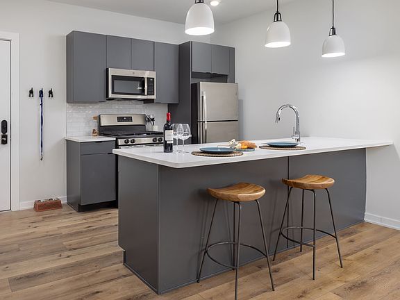 Sleek stainless steel appliancesQuartz countertopsGourmet kitchensIn-unit washer and dryer