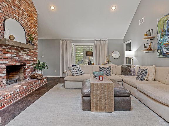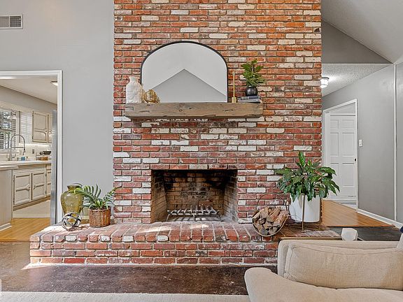 Privacy fenceFlexible front roomClassic red brickTall vaulted ceilingsFour bedroomsEat-in kitchenLarge fully fenced backyard