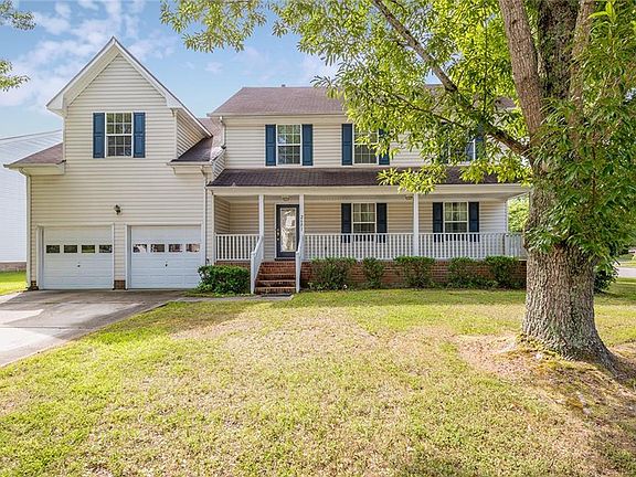 Welcome to highly sought-after Sawyers Mill in Chesapeake! This spacious 5-bedroom, 2.5-bath home offers over 3,000 square feet of comfortable living on a desirable corner lot. Enjoy a welcoming front porch and a bright, open floor plan perfect for entertaining. The kitchen opens to the living and dining areas, featuring plenty of cabinet space and natural light. Cozy up in the large living room with a gas fireplace, or retreat to the finished room over the garage (FROG)—ideal for a home office, gym, or playroom—with a convenient walk-in attic for extra storage. The primary suite offers a peaceful escape with a walk-in closet and private bath. Neighborhood amenities include a community pool, clubhouse, playground, and walking trails. Located in the heart of Grassfield, this home offers convenience, comfort and community. Seller concessions available for cosmetic upgrades with favorable offer. Schedule your showing today!