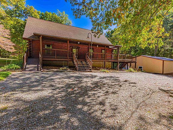 Incredible Westside 2.6 acre setting with fabulous log cabin home overlooking stocked pond!! Amazing opportunity to acquire a peaceful retreat that's tucked away and offers unmatched privacy and tranquility. This log cabin home offers 1.5 stories plus a full finished basement that provides an in-law suite that would satisfy even the most discerning buyers. Some features include; huge main level great room with wood burning stove, large wood beams in vaulted areas along with french doors to screened in porch; large open concept kitchen with tons of cabinetry, solid surface counters, center island for casual bar seating and full compliment of stainless steel appliances; main level primary bedroom has private ensuite full bath; all bedroom offer a retreat feel and are very generous in size offering ample closet space; basement is fantastic while providing 2nd full kitchen fully equipped, large family room, oversized bedroom and plenty of unfinished storage space. Some finer points of mention include: large 24x32 pole barn/garage; wrap around covered porches; onsite lean-to building; Generac generator system; HVAC 2018; 50 year shingle installed in 2015; open deck for fire pit area and so much more!! Wonderful setting that can be enjoyed year round!!