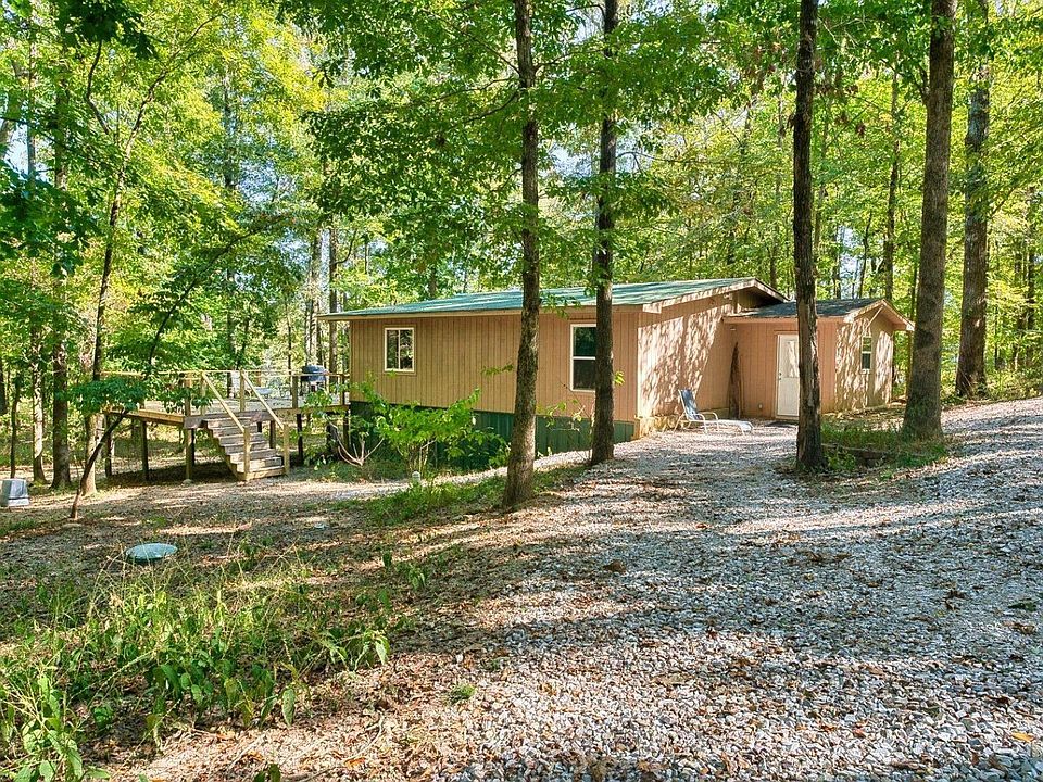 Nestled in a tranquil, 23 Acre wooded setting, this charming bungalow is the ultimate escape. Step inside to discover a cozy layout featuring 2 bedrooms, 1 bathroom, and a flexible bonus room that easily serves as a guest room, den, or home office. The true magic of this property lies outdoors. The expansive deck invites you to entertain, dine, or simply relax while soaking in the peaceful water views. A gentle path leads you to your private dock, offering direct access for boating, fishing, or simply enjoying the lakeside ambiance in an incredibly peaceful environment. For the enthusiast or entrepreneur, a massive 30x60 shop provides endless possibilities for a workshop, boat storage, or a creative studio. There is plenty of room to build additional homes or use your imagination, as it is outside of the city's jurisdiction. This is more than a home; it's a lifestyle. Secure your private slice of paradise today!