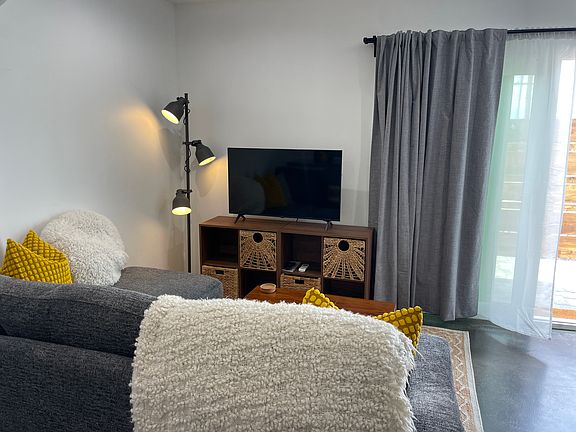 The studio is open, yet divided, offering a relaxed bedroom area with room darkening shades and a separate living space for lounging or working. Includes all amenities, utilities are included and everything is fresh and new. Large, gated, private patio great for coffee, WiFi work space, or just chilling out. A great space.
