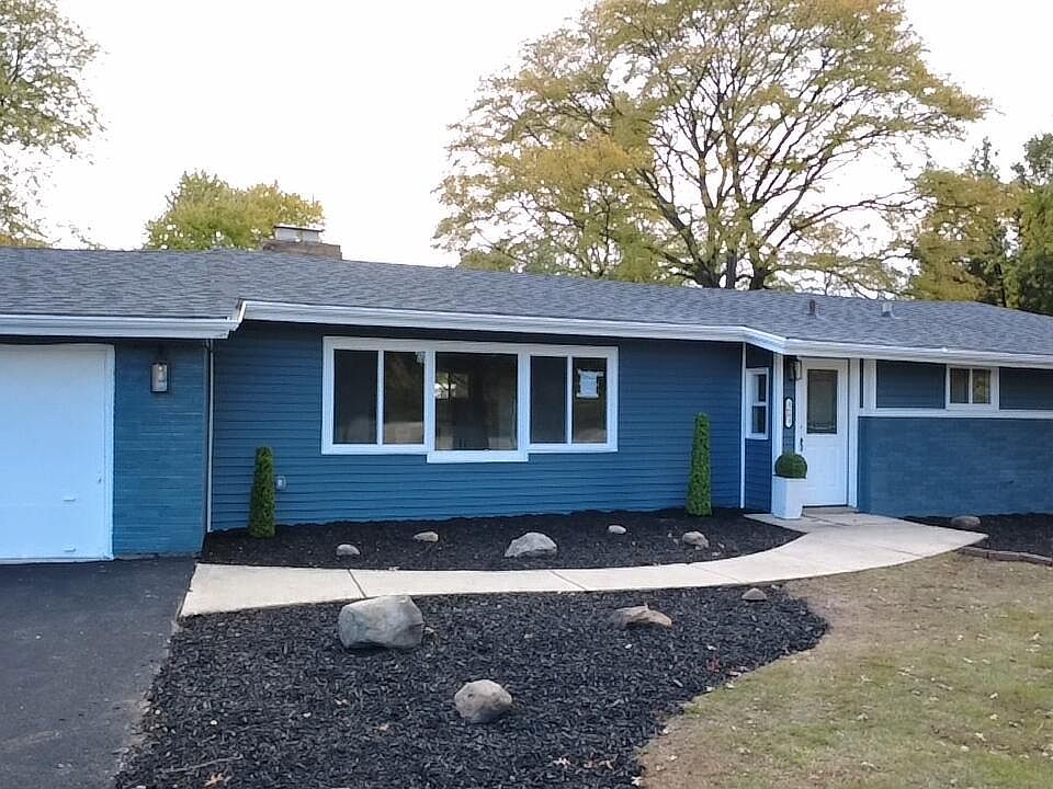 Stunning Ranch Home with Modern Finishes and Prime Location! Experience one-level living at its finest in this gorgeous ranch-style home, perfectly situated on an oversized lot with plenty of frontage and an extended driveway. Enjoy outdoor living with a covered back porch, convenient outdoor storage, and an attached two-car garage. Inside, you'll find a spacious open-concept layout featuring recessed lighting, a beautiful accent wall with a cozy fireplace, and a stylish ensuite master bedroom. The bathrooms showcase custom-tiled showers, while the laundry room adds extra convenience. The kitchen is a showstopper with quartz countertops, stainless steel appliances, and a peninsula island perfect for entertaining or casual dining. Located in the heart of Merrillville, this home offers easy access to major expressways, shopping, and dining -- making it the perfect blend of comfort, style, and convenience.