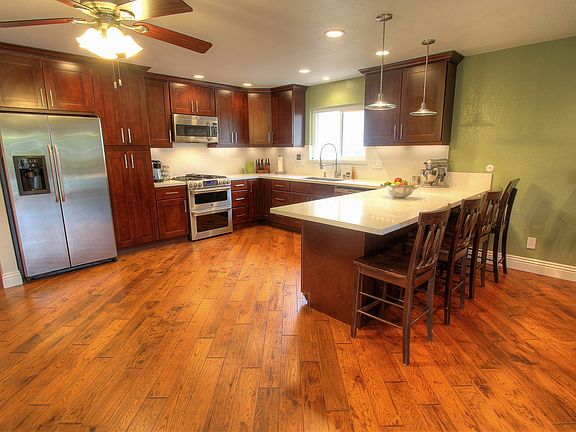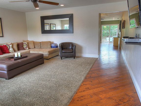 Set back from the street on a flag lot, you will love this beautiful single story home. Open concept kitchen remodeled within the past year features quartz counter tops, self closing cabinets and drawers, stainless steel appliances and a separate beverage refrigerator. Kitchen opens onto combination dining and family room with brick fireplace. This open area has beautiful diagonal hardwoods as well. Ceiling fans in every room. Scraped ceilings throughout. Almost finished attic accessible from first bedroom provides loads of extra storage. Master bedroom features walk in closet, a second closet and master bath. Low maintenance yards (including artificial lawn) will provide you plenty of time to relax in the built in spa. What more could you ask for? Oh yeah, great neighbors as well! Must see to appreciate!