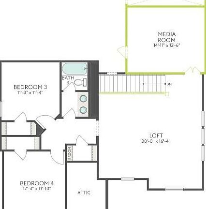 The Wren- Spacious gameroom and media room. vaulted ceiling @ family room. faces SE