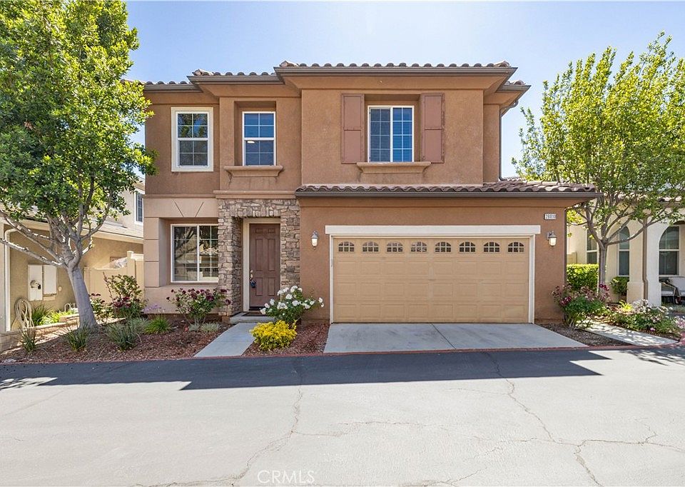 Welcome to this beautifully maintained home within the prestigious and serene gated Milestone Community of Santa Clarita, California. Nestled at the pinnacle of Golden Valley, 26010 Zaddison Ct. offers an exceptional living experience characterized by privacy and tranquility. This charming residence has been thoughtfully updated with fresh paint, new carpeting throughout, and updated recessed lighting, creating a welcoming and contemporary ambiance. Upon entering, guests are greeted by a warm and inviting living room, anchored by a cozy fireplace that serves as the heart of the home. Natural light floods through the windows, illuminating the spacious kitchen, new dishwasher and microwave. The home's thoughtful layout includes three generously sized bedrooms situated on the second level, each featuring ceiling fans for added comfort. The convenience of a laundry area on the second floor highlights the home's practical design, ensuring ease and efficiency in daily living. Attention to detail is evident in the direct access to the two-car garage, providing convenience. The patio's hardscaping offers a versatile outdoor space perfect for grilling and hosting backyard barbecues, allowing for memorable moments with family and friends. Residents of the Milestone Community enjoy access to a host of luxurious amenities. The beautifully maintained park, complete with barbecue facilities, a swimming pool, and a spa, serves as a central gathering space. The addition of cabanas and a tot-lot playground area enhances the communal atmosphere, making it an ideal environment for entertaining and leisure. Strategically positioned for convenience, the property offers easy access to the 14 Freeway, placing excellent schools, major shopping centers, and a wide array of restaurants within reach. No Mello Roos and low HOA make it a highly desirable choice for buyers seeking a blend of luxury, comfort, and convenience in Santa Clarita.