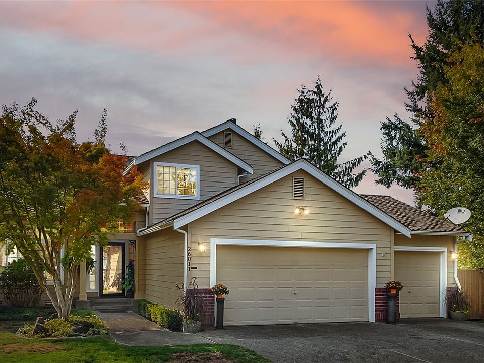 Established FAIRFIELD COMMUNITY. This beautifully maintained 4 bdrm home w/3-car garage is located on a quiet neighborhood cul-de-sac, offers a spacious, PRIVATE back yard w/charming gathering spaces, raised gardens & backs to a community park! Features formal living & dining rooms, kitchen w/granite, main floor bdrm, family rm PLUS bonus/flex rm via French doors. Adorned with thoughtful ARCHITECTURAL enhancements; an impressive, updated staircase, gas fireplace surrounds w/storage, built-in cabinetry & shelving. Upper level features 3 more bedrooms, incl spacious primary w/large 5 pc ensuite & updated guest bath. NEW furnace, A/C, paint, 2018 ROOF. Extra storage & shed. Must see home in a great location and near to all Covington amenities!