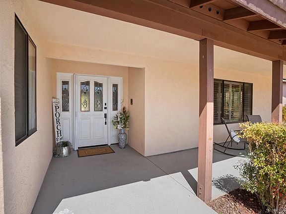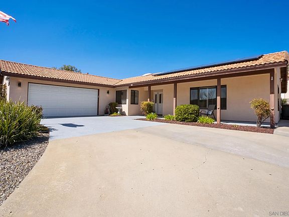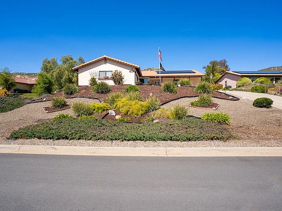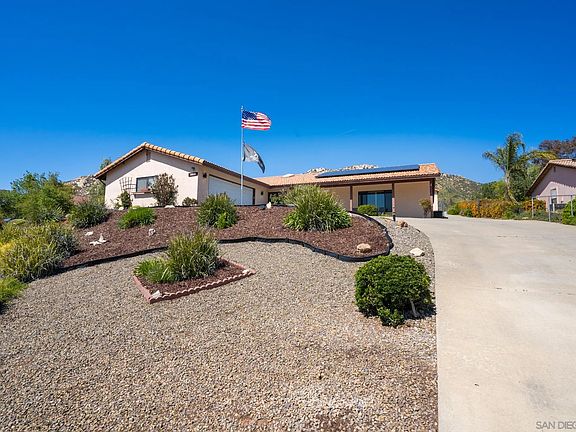 Stunning single level San Diego Country Estates home! Mountain views and glorious sunsets, this property has it all! Walk into the grand living room with vaulted ceilings and new wide plank flooring throughout! Bonus space off the kitchen where the kids can play or turn it into a home office! Luxurious dinning area with a fireplace to help add ambiance while entertaining guests. Exit the slider to the fully covered back patio with maintenance free turf! As if the house itself wasn't amazing.. bring all your toys as this house has a detached RV garage! Additional full bathroom in the RV garage could make this space an easy conversion to an ADU. All fruit trees on a drip system - plum, grapefruit, lemon and orange. Plenty of space for gardening, horses, boat or RV. This move in ready property is waiting for you to pack your bags and move right on in! The neighborhood enjoys block parties and front yard BBQ's. This community has miles of hiking trails, equestrian trails, tennis courts, pickle ball courts, 2 community pools, dog parks, playground parks, summer concerts in the park and of course an award winning recently renovated golf course!