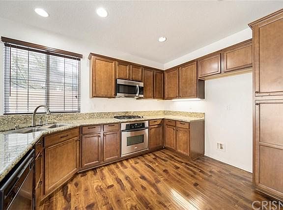 Welcome to the gated community of Milestone! Enjoy the close proximity to the 14 fwy, shops, restaurants, schools and bike/walk paths! This charming 3 bed 2.5 bath property comes with engineered laminate flooring through out the house, kitchen granite counters w/breakfast bar, stainless steel appliances, wrap around patio/yard and a 2 car attached garage! Laundry room located upstairs which makes for easy access. Master Bath features double sinks, separate oval tub & walk-in shower, plus a large walk-in closet. HOA amenities include a community pool & playground and this tract has No Mello Roos.