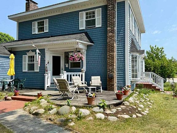 This beautiful two story “Victorian style” year round home called “Harbor Belle” on the main road around Beaver Harbor has three bedrooms and two bathrooms in its 2,100 square feet of living area. It has a wonderful view of Whiskey Point, the Lighthouse and the Harbor Entrance along with the North half of the Bay. This home built by the famous Island builder, Charles Tilly, circa 1900, was significantly rebuilt inside and out by Bud Cruickshank in the late 1970’s. The owners have redone the inside into a colorful delight. Except for the artwork, most, if not all of the personal property will stay. The décor also gives it an appropriate nautical style. There is a combined kitchen and dining area with a cozy fireplace lounge just inside the southwestern entrance. The large room on the north side of the main floor is a combination living room with an office area with a full wall library and one full wall of the owner’s art on display. The main bedroom and bathroom are on the inland side of the home. The upper level of this special home has a bright, spacious living room filled with views of Beaver Harbor. Upstairs includes one queen bedroom and one single bedroom, as well as a full kitchen and bathroom. This is a rentable apartment with a separate entrance. This home also works as a large single family home since there is and interior door that connects the lower level to the upstairs apartment. Behind the main house, an additional (approx) 600 sq.ft. building is currently being used as an artist studio/gallery and could also be a retail space (harbor zoning) or developed into a mother-in-law apartment. It also has an upstairs with a view of the harbor. Walk to the Library, Island restaurants, stores, docks, post office, hotels, bars, community center, and much more – in less than ten minutes. It is in a convenient, wonderful location. In Harbor Springs, Michigan this would be a two or three million dollar house. It is listed at the asking price of $795,000.