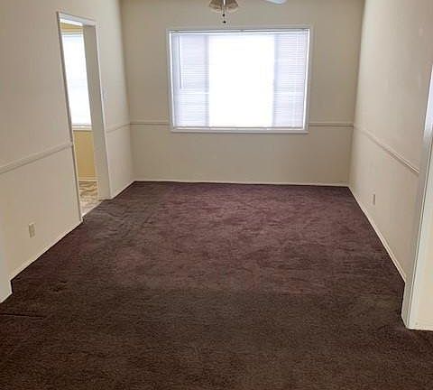 2 bedroom 1 bath 2 car garage nice and clean unit Large back yard across from park Carpet in front room and bedrooms vinyl in kitchen and bathroom Tenant pays all utilities. Owner pays gardener. No smoking. No pets. One year lease than reverts to month to month. Parking in garage , on driveway and on street.