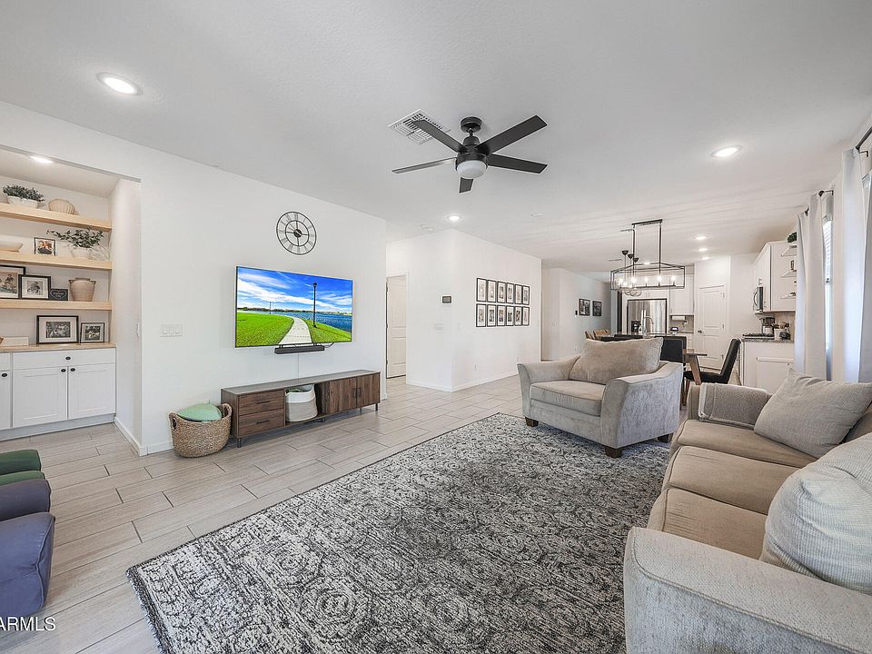 Welcome to a home that blends modern design, smart functionality, and the kind of thoughtful touches that make everyday living feel elevated. Located in Mission Royale II, you'll be able to enjoy all the amenities like the waterpark (featuring 2 slides), grass for games, and energy to burn at the park - when you're not inside your charming home. Built in 2021 and offering 2,026 square feet of open-concept living, this 4-bedroom, 3-bathroom beauty is move-in ready and designed for both comfort and style. From the moment you step inside, you're greeted by a bright, airy layout that flows seamlessly from one space to the next. The heart of the homethe kitchenis a true showstopper. With sleek granite countertops, modern light fixtures, a spacious island perfect for gathering, and a walk-in pantry, it's ready for everything from quick breakfasts to weekend dinner parties. The gas stove adds a chef's touch, while the open layout keeps you connected to the living and dining space. The living room is warm and inviting, anchored by custom shelving that adds both style and function. Large windows flood the space with natural light and draw your eye straight to the backyard. Step outside and you'll find a recently remodeled outdoor retreat featuring a sparkling, fenced private pool, perfect for cooling off in the summer or enjoying a quiet evening swim. The surrounding patio space is ideal for lounging, dining, or hosting friends and family, with a layout that feels like a natural extension of your indoor living area. The floor plan is as functional as it is beautiful. The primary bedroom is tucked away on its own side of the home, offering privacy and a peaceful retreat at the end of the day. With its spacious design and en-suite bathroom, it's the perfect escape. Three additional bedrooms and two more bathrooms provide flexibility for guests, a home office, or a playroomwhatever fits your life best. Every detail here has been thoughtfully chosen to combine modern convenience with timeless appeal. Whether you're relaxing by the pool, cooking in your dream kitchen, or simply enjoying the open, sun-filled spaces, this home is built for the way you live today. Come see for yourself how this property checks every boxmodern finishes, a flexible layout, and inviting backyard. AND while you'll love your home, you'll also adore your community! Close freeway proximity, minutes from shopping, and community amenities galore. Your next chapter starts here!