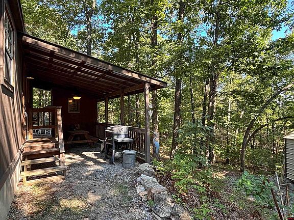 Tucked away on 3.62 wooded acres m/l, this handcrafted one-bedroom cabin feels like a true Ozarks hideaway. Unique craftsmanship runs throughout, giving the home a warmth and character you won't find in a cookie-cutter build. Experience the best of off-grid living with the convenience of city water delivery by Water Wagon and an electric pump that provides water to the home—practical comfort without sacrificing the retreat feel. Step outside to a covered porch or patio where mornings begin with birdsong and evenings end under the stars. Two sheds—one wired with electricity—plus a detached carport provide ample space for tools, toys, or hobbies. And with CCC access to Bull Shoals Lake less than two miles away, you'll enjoy easy days of fishing, boating and exploring. With no restrictions and an off-grid setting, this property embodies the free-spirited lifestyle it offers. Will not go with VA, RD, FHA or Conventional Loans.
