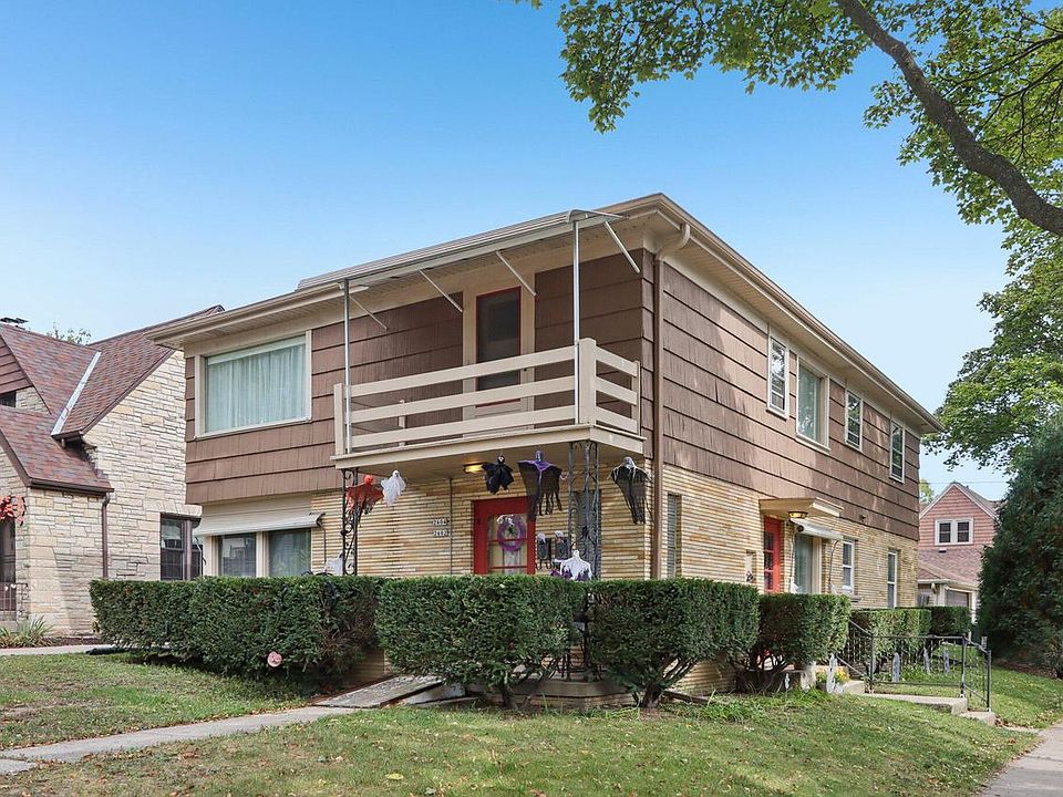 Welcome Home to this Meticulously Maintained By Owner Mid-Century Modern duplex In Excellent Tosa Location! Roman Brick lower exterior surround & Cedar-sided upper! From the Foyer, Main level Super Spacious Living room ''L' to dining rm w/ Built-in China Cabinetry/shelves, huge eat-in kitchen, Big updated Full bath, & bedrooms w/ large closet spaces! Mid Century Modern means Hardwood flooring in most rooms, tons of closet spaces atypical of many other duplexes! Upstairs find similar updated conditions w/ porch overlooking 72nd, another updated bath, newer carpeting throughout! Basement has enormous Rec room w/ faux fireplace space, big laundry area, & tons of storage spaces! Outside backyard abuts concrete patio area, a quality 2+ Detached garage w/ 2 additional parking spaces in front!