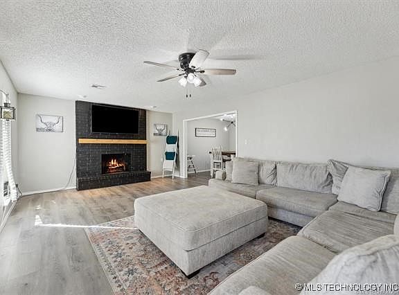 This charming 3-bed, 2-bath home in Southgate Addition features a spacious living room with a wood-burning fireplace, an updated kitchen with granite countertops, and updated bathrooms. Newer vinyl plank flooring throughout, fresh paint, and updated fixtures add modern appeal. Enjoy the enclosed sunroom overlooking a large, fenced yard and storage shed. Newer roof, newer plumbing and a great location near Hwy 64 & 69! Move-in ready—schedule your showing today!