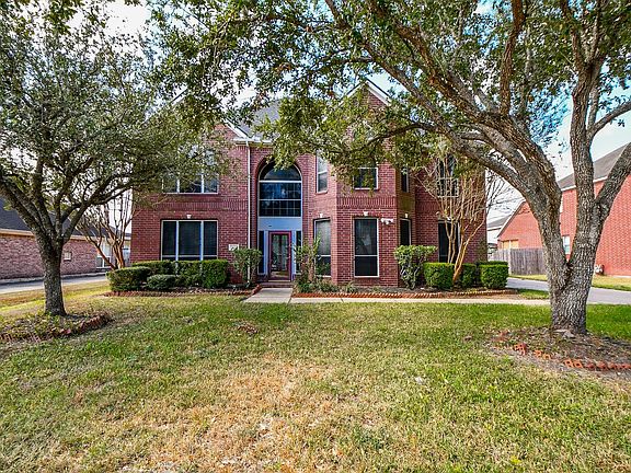 Beautiful home available for a new family in the Sunrise Lakes Subdivision! This 2 story home has 4 bedrooms and 3 1/2 baths. Wonderful open layout w/ formal dining, high ceilings, spacious kitchen, downstairs master suite, and a first floor office. 3 bedrooms upstairs with a big size game room. Roof replaced in -2021, AC - 2018, Water heaters - 2022 & 2023. New carpet & freshly painted. 2 1/2 car garage. Full brick. Hardwood floor/ Stone tiles in kitchen and master bath. Whole house equipped with surge protector installed. Great backyard with outside grill with dedicated gas line. Home includes fridge, & sprinkler system. Come see what this home can offer you!