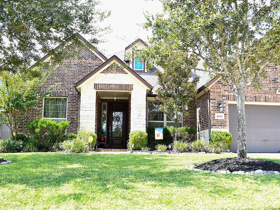 Welcome to this beautiful 2015 built home, with tons of upgrades. This is an Energy star certified home featuring spray foam insulation and low-E thermal windows. Inside, enjoy the wood look tile flooring, crown molding, pre-wired speakers, extended master bedroom, patio, shower, and 12 ft ceiling with archways opening. Exterior features include sprinkler system, stone elevation, gutters, 4 sided brick, and beautiful landscaping. Desirable Open floor concept connects kitchen, living, and dining. The exquisite kitchen is equipped with granite counter tops, huge island, stainless steel appliances, elegant back splash, under mount sink, walk in pantry, and a plenty of natural light. The spacious master suite features vanity mirrors, huge walk in shower, dual sinks, tile flooring, and spacious walk in closet. The property allows easy access to the freeway, close to restaurants, and shopping. Zoned to highly rated school district. No neighbors back. Must See! No Flood.