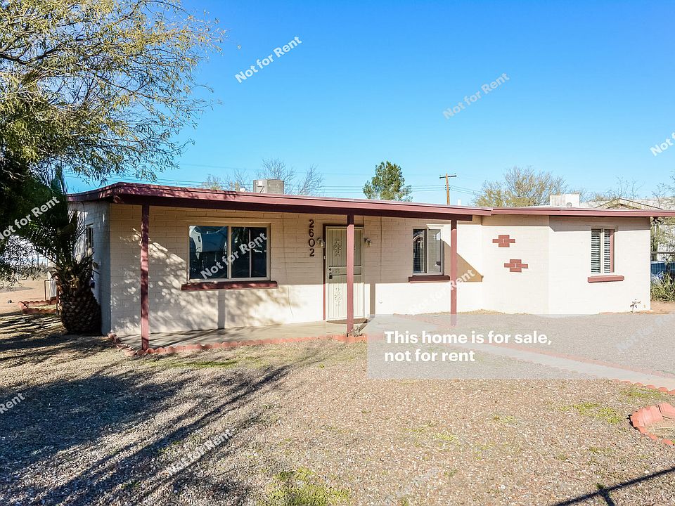 This Tucson one-story home offers tile and laminate flooring, a covered front porch, and an eat-in kitchen. This home is vacant and cleaned regularly.