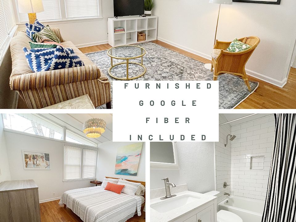 FURNISHED MCM *designer* rental with flexible lease terms. AVAILABLE NOW. Spacious two-bedroom, one bath duplex unit near downtown. GOOGLE FIBER INTERNET INCLUDED. Close proximity to Huntsville Hospital, Crestwood, Redstone Arsenal, grocery stores, Mayfair Park, and all Huntsville has to offer. All furnishings, smart tv, linens, kitchen utensils and pots/pans are included! Both bedrooms have queen beds. WASHER AND DRYER. Max number of occupants is four people. Driveway space can accommodate up to four vehicles. Light and bright! Recently updated with new bathroom, kitchen, paint, and appliances. $1,150/month for one-year lease. **Please inquire for rates on leases less than one year** Minimum 650 credit score and background check will be completed.
