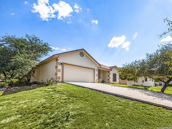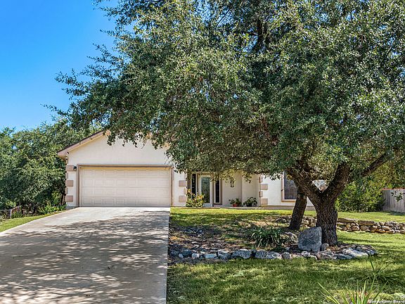 Lovely one-story home located in the serene community of Timberwood Park, surrounded by mature trees an abundance of wildlife. This custom home sits on .46 acre and features high ceilings, a spacious open floor plan, and ceramic tile flooring throughout the main living areas, kitchen, and bathrooms. The large kitchen offers plenty of space for cooking and gathering, with custom maple cabinets, Corian countertops, and an open layout that connects to the dining and living areas. The primary suite includes a garden tub, separate shower, double vanity, and walk-in closets for added convenience. Step outside to enjoy the spacious backyard with a covered patio and plenty of shade provided by beautiful trees. Recent updates include a roof replaced in October 2023, AC core and blower replaced in May 2018, solar screens added in May 2025, new flooring in the primary suite and carpet replaced in the bedrooms in May 2024, plus septic pumped and inspected in September 2025. This home is just a short drive to schools, parks, TX-281, and more. Schedule your personal tour today!