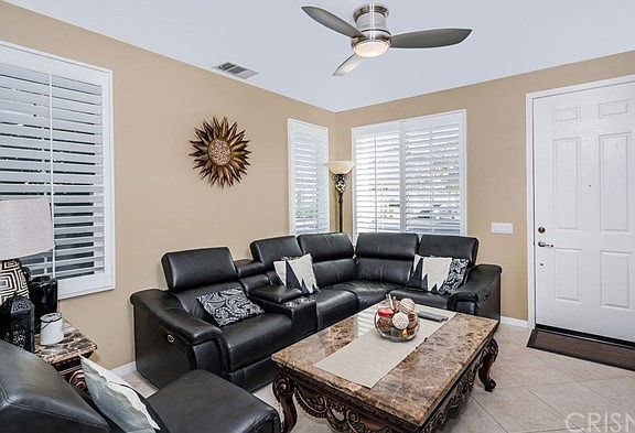 This Awesome Beautifully Decorated 3 bed/2 bath is NOW Available. With over 1500 sq ft you will find this to be the Perfect Choice. Features such as; Granite Kitchen Counters w/Upgraded Cabinets, Plantation Shutters throughout, Custom Color Paint, Living Room Fireplace w/Ceiling Fan, Tile Downstairs Flooring and Ceiling Fans in ALL Bedrooms. The Backyard has Stone Pavers and is Perfect for the BBQ. Walk to the award winning Golden Valley High School and enjoy Santa Clarita living. Located behind Gates and close to everything, this is Priced to sell.