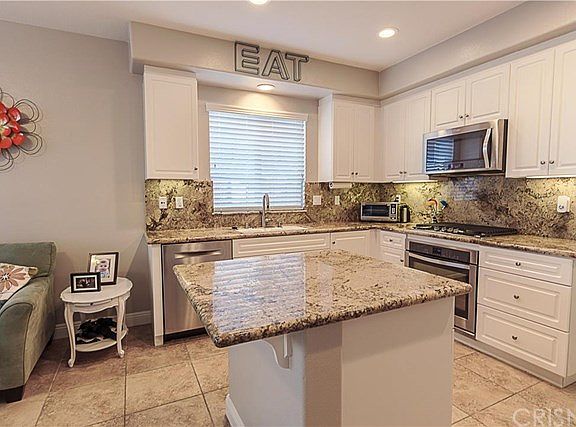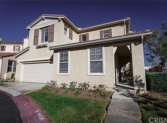 Nestled at the top of Golden Valley behind the gates of the Milestone tract in Santa Clarita, rests this delightful 3 bedroom home for sale on a large corner lot. Light and bright, and mindfully upgraded with "California Dreaming" in mind. As you enter the main floor, you notice the new ceramic tile planks adding sophistication and warmth to the living and formal dining areas. Enter the kitchen and you will find granite counter tops, new stainless steel appliances, dishwasher and recessed lighting, with a view to the backyard and beyond. This is one of the largest backyards in the neighborhood ~ updated to include new pavers / patio that wraps around exterior; area for a fire pit and outdoor entertaining; and artificial turf for the water wise and low maintenance. Plenty of room for children's playdates, entertaining and pets. Back inside, family room off kitchen features new paint, fireplace and 18" neutral-colored ceramic tile. Upstairs you'll notice the custom bannister, with carpet and new paint throughout second level. Full master suite, with second and third bedrooms sharing Jack-and-Jill style bathroom. Independent laundry room for full size washer/dryer. Two-car garage with new water heater. HOA $200/month. Community pool and green spaces.