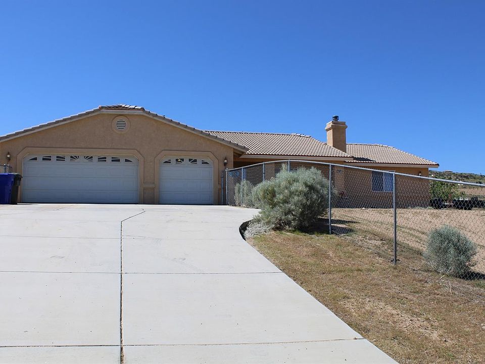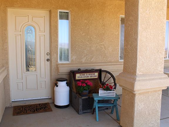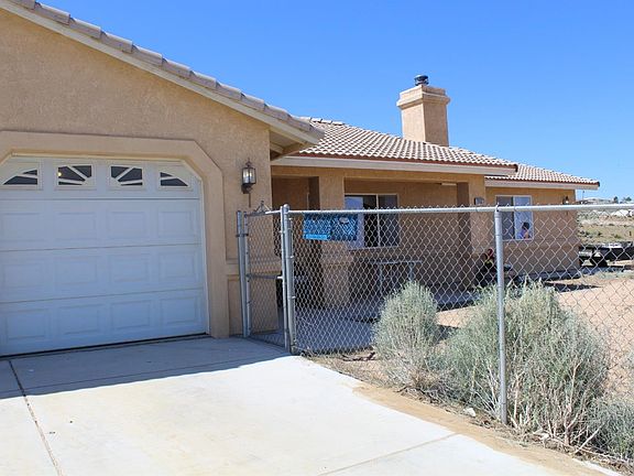 Lovely ranch home on 2.5 acres, East Apple Valley. You will be amazed by the 360 views, in the evenings you see the valley lights. You have mountain and hillsides surrounding the home. Perfect place for the off road and horse riding enthusiasts. You will be surprised by the high ceilings, open concept and large living room. The wood burning stove keeps the house toasty and is very energy efficient. The kitchen is open to the eating area and offers a walk in pantry and a wrap around breakfast bar. Plenty of seating for company as you congregate to the kitchen. Home offers a split floor plan providing privacy to the Master bedroom. Master bath has a separate tub and shower, natural lighting, dual sinks and large walk-in closet. Laundry supports a 1/2 bath and plenty of storage cabinets. On the other side of the house, you have two more bedrooms, one is exceptionally large with a built in desk and another walk in closet. Guest bath is conveniently arranged between both bedrooms. Patio is enclosed offering natural lighting and two fans. The horse pens and corrals stay with the home and there are two out buildings. The larger one sports a built in bar, wood burning stove and country furnishings. This added space is a great place to hangout and entertain after hitting the dusty trails! Three car garage with automatic door openers, has plenty of storage and is extra deep. So much to offer with this great property and it is priced to move, you will not be disappointed.