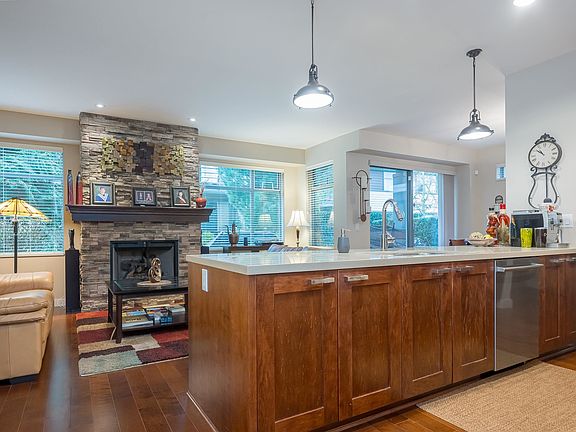 Welcome to Vinterra Villas - a highly sought after luxury townhome in Morgan heights. This 3,000+ sq foot duplex-style residence offers 2 levels plus a fully finished basement. Upon entering you will discover 9 foot soaring ceilings, warm hardwood floors, 2 gas fireplaces, & an expansive open concept kitchen w/ polished stone countertops & stainless steel appliances. Generous room sizes throughout - the spacious primary bedroom includes its own balcony! This is an entertainers dream! This unit is exceptionally cozy, bright, and luxurious throughout. Very proactive strata with a healthy CRF. Walkable to everything - grocery, transit, retail, and renowned Grandview schools. Open this Sunday - November 23 from 1-4pm.