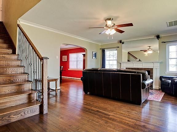 Listing agent: Scott Jackson, Call 214-827-2400 for information. Attractive Tudor home situated on a double lot at Velasco and Abrams. Thishome has a beautiful living and dining room with an arched stained glasswindow, a wood burning fireplace, gleaming hardwood floors, crown moldingand generous room sizes. The island kitchen has a gas cook top with a stainlessvent-a-hood, dishwasher, double sinks, many cabinets with abundant counter spacetile flooring with a period breakfast nook. The downstairs master bedroom has anadjacent and historic bath. There are two upstairs bedrooms with an updated bathroom with vintage fixtures. In 2004, 2 bedrooms and a Jack and Jill bath were added. There is an additional casual den with a full bath or a flexible fourth bedroom. The larger lot allows for flexible outdoor living with a separate courtyard area and an oversized backyard. This home has had significant updates, cool ply roof decking, upgraded windows and the gas line replaced. The home is in the R.E. Lee attendance zone which is an “Exemplary” school. New roof and gutters installed 2012.