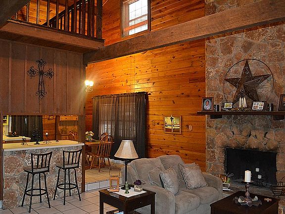 Charming log cabin nestled among the woods in Lake Shadows. Spacious 2-story home with game room loft. Elegant formal dining room opens to living area w/ wood-burning fireplace. Kitchen w/ multiple counter work stations, & ample storage space. Kitchen has an open concept to living area. Master retreat downstairs w/ high ceilings & bright w/ natural light. Spa like master bath w/ double sinks & Humongous jetted tub. Gorgeous front and back porch areas. Backyard fenced w/ storage shed. Must see!