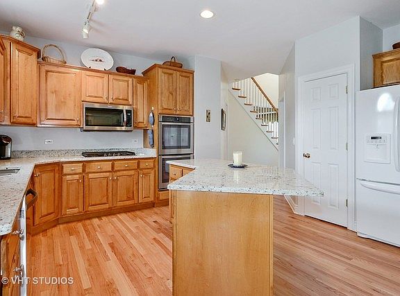 PERFECT IN EVERY WAY! Even from the curb you'll see that this brick front beauty in popular Harmony Grove is special. The moment you enter the 2-story foyer you'll immediately feel at home. Beautifully updated KIT w/brand new stainless steel appl, double oven, sleek granite tops, loads of birch cabinets, center island w/seating & generous eating area flows right into the oversized FAM RM w/gas start fireplace & oversized windows to the back yard. So light and bright! Gleaming hardwoods. White 6-panel doors & 5 1/2" base boards thru out. Volume/vaulted ceilings. Fresh interior & ext paint. New carpet in FAM RM & private 1st floor den. Nice sized BRs. Closet & storage space galore! Master suite boasts a vaulted ceiling, sitting area, 2 walk-in closets & a glam bath w/taller double bowl vanity, Jacuzzi tub & walk-in shower. Relax on your expansive brick patio overlooking the pro landscaped yard or in your 3-seasons room w/7-person hot tub. Sprinkler & security systems, too. GET HERE!