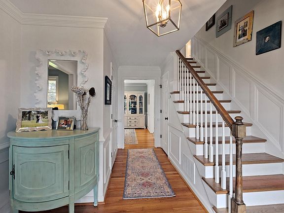 Sited on nearly an acre in Ivy, the current owners have transformed this home to include a modern farmhouse style exterior renovation and full metal roof, fully renovated kitchen, and refinished hardwood floors throughout. Entering the home's light-filled foyer from covered front porch leads to an office space with French doors, a living room, and a renovated powder room with herringbone marble floors and vanity. A spacious dining room with wood burning fireplace boasts sliding doors to a back deck showcasing beautiful backyard. The new kitchen with built-in breakfast nook, new pantry with barn doors, custom cabinetry, new appliances, designer lighting, quartz countertops, and an island with prep sink looks over the perfect lounging space surrounding the gas fireplace with custom bar featuring storage pullouts, surround sound, and a wine rack. French doors lead to the large family/rec room with beautiful built-ins. Tiled mudroom has laundry, sink, and extra fridge. On the second floor enjoy a large primary suite with walk-in closet, a gorgeous brand new bathroom with tiled walk-in shower, plus three bedrooms and another renovated bathroom with shower and tub. Do not miss this sprawling, special property in the heart of Ivy!