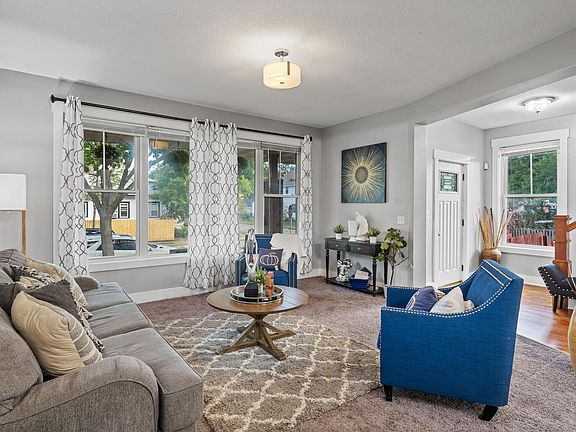 Move right in! This stunning home with serious curb appeal features four bedrooms, three bathrooms, two car garage, a big finished basement, a big backyard with a deck, and so much more! You will love the updated kitchen with stainless steel appliances, tall ceilings with inviting floor plan, lovely wood floors, soft carpet, big windows for plenty of natural lighting, spacious rooms, and multiple spaces for entertaining! Located just minutes from downtown Minneapolis, near plenty of local shopping and entertainment, many great schools, and great commuting with access to the bus line and several major highways. Don't miss this one!