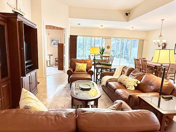 Stunning Oakmont model single-family home ideally situated on a quiet cul-de-sac with stunning lake views! This 3-bedroom plus den, 2-bath residence offers a bright open floor plan with soaring 12-foot ceilings in the great room, arched windows in the den and abundant natural light.The spacious primary suite features a unique his-and-hers bathroom arrangement and generous closet space. Tiled flooring throughout the main living area. Enjoy outdoor living at its best with a custom pool overlooking the lake and plenty of patio space for relaxing or entertaining. Additional highlights include a side-load 2-car garage with extra parking, laundry room with utility sink, and a new roof (2024) for peace of mind. Conveniently located just a short distance from the community's town center amenities The heart of this unique residential community is its waterfront Town Center where you can grab lunch or dinner at the on-site "Centanni" Italian restaurant; enjoy the tennis and pickle ball experience on the eight Har-tru lighted courts with on-site tennis instructor and active tennis program. Take a swim in one of the three heated pools, fish from one of the many picturesque bridges; stop by the library, play ping pong or pool. Also located in the Town Center is the full service Illustrated Properties real estate office, beauty salon, mail facility and children's playground. Enjoy 12 miles of scenic pedestrian pathways, take a bike ride or enjoy a vigorous work out in the renovated fitness center or play bocce - all for the exclusive use of River Walk residents! Yoga, mahjong, bridge, aqua aerobics, foreign language classes, crafts and more are some of the other fun activities offered! River Walk offers luxury resort-style living, without extravagant ''country club'' fees! Conveniently located near the turnpike, Palm Beach International Airport, the Outlet Malls, Kravis Center, Downtown, and Palm Beach Island.