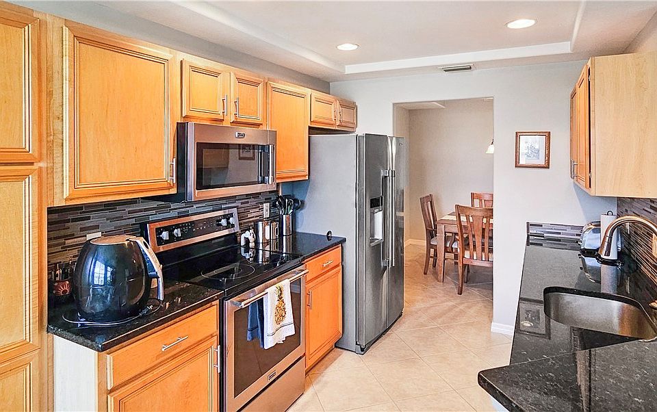 Welcome to Sandoval—Cape Coral’s premier gated resort-style community—where this stunning first-floor, TURNKEY waterfront condo offers the perfect combination of comfort, style, and lifestyle. Whether you’re searching for a year-round home, seasonal getaway, or income-producing rental, this 2-bedroom + den, 2-bathroom residence is move-in ready—just bring your clothes and toothbrush! This former DR Horton Heron model has been tastefully furnished and decorated, featuring a spacious open layout with a separate dining area, breakfast nook, and a relaxing screened lanai that overlooks a peaceful lake. BEST VIEW IN THE COMMUNITY!! This is why the builder made it their model! The kitchen features stainless steel appliances and ample glazed wood cabinets, Black Granite countertops, Stainless Steel Appliances, and tile backsplash, while the primary suite boasts a large walk-in closet and dual sinks with granite countertops in the en suite bathroom. Enjoy the Florida lifestyle with wall-to-wall tile with only carpet in the bedrooms., in-unit laundry, updated lighting, and everything you need—from linens to kitchenware—included in the sale. For peace of mind, this condo did not flood during Hurricane Ian.