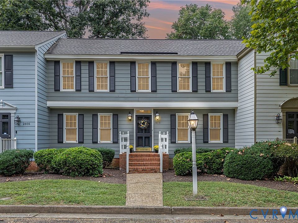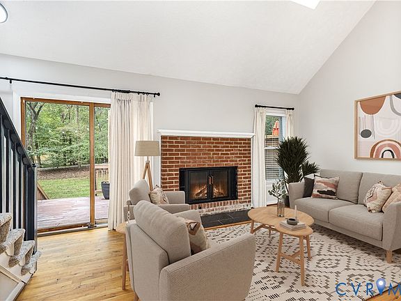 Welcome to this lovely townhome in the sought-after Berkley Pointe neighborhood featuring 3 bedrooms and 2.5 bathrooms. The first floor offers a versatile bedroom, formal dining room, and a kitchen with stainless steel appliances, ample cabinetry, and convenient access to the laundry area. The inviting family room boasts vaulted ceilings, a charming brick fireplace, and sliding glass doors that open to a private deck and shared backyard. Upstairs, the spacious primary suite includes an ensuite bathroom, accompanied by an additional bedroom and a large full hall bath. Perfect for both comfort and functionality, this home offers plenty of indoor charm and outdoor space to enjoy.