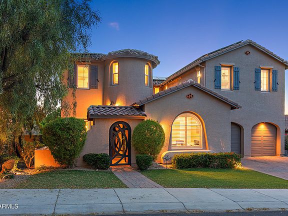 Luxury meets comfort in this stunning 5 bedroom + office + media room home in WestWing. Over 3600 sq ft of refined living with $300K+ in custom upgrades. The gourmet kitchen features quartzite counters, Thermador appliances, custom cabinetry, and an oversized island - perfect for entertaining. Check out the porcelain wood looking tiles throughout the home. The spacious primary suite offers a spa-like bath, marble flooring, and a huge walk-in closet. High ceilings, abundant of natural light, smart home features, and paid off solar add to the appeal. Step outside to a resort-style backyard with a heated pool, spa, covered patio with a mister system and mechanical shades for the Arizona summers surrounded by mountain views. Ideal for hosting or relaxing in quiet luxury. Close to trails, top-rated schools, parks, and shopping-this home is Arizona living at its best!