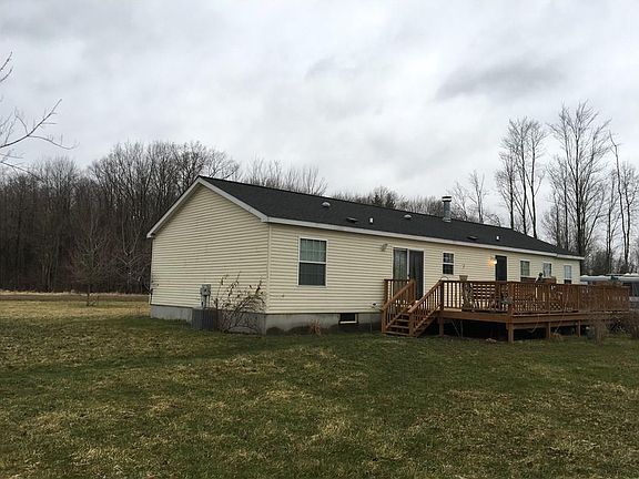 2006 3-bedroom/2-bathroom modular home with woodburning fireplace on 13 acres. Full basement with superior walls. Incredible master suite with walk-in closet. All 3 bedrooms have walk-in closets. Back deck to overlook the serene, wooded 13-acre property full of wildlife. Newer central air (1-year old) and furnace (4-years old). 3 sheds. Private setting centrally located between Edinboro, Erie and Meadville. Conneaut School District.