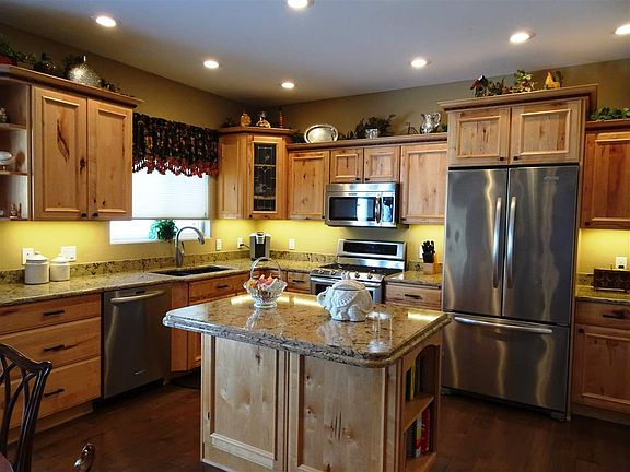 This elegant custom home in NW Minot has all the amenities you will ever want. Main floor has a lovely foyer, large living room with hardwood flooring, crown molding, and vaulted ceiling, open concept living room, dining and kitchen. Dining room large enough for any table and has doors to maintenance free Trex deck. The kitchen features rustic knotty maple cabinets, Cambria Quartz counters, island, and custom pantry with hickory shelves and automatic light. Master bedroom is large with walk-in closet and spectacular master bathroom with Quartz counters, ample storage, walk-in tiled shower with 2 heads and seat. 2 additional bedrooms on main level, full guest bathroom, 1/2 bathroom, awesome laundry room with sink, lots of cabinetry and Quartz counter. You will love the area when you come into house from the garage with custom bench/storage center and closet. Custom iron railing and wide stairway leads you to the lower level with large family room, gas fireplace with Quartz surround, daylight windows and walkout access to patio, large wet-bar with over-sized island, wine rack, sink/garbage disposal, stove top, dishwasher, large stainless refrigerator/freezer and lots of cabinetry--this lower level is an entertainers delight. There is also 2 daylight bedrooms with walk-in closets, a large full bathroom, and additional large non-egress room that makes a great play room, office, or additional bedroom. The 3-car attached garage has floor drains, storage, heater, fully finished and insulated. Backyard has a large Trex deck with stairs down to the yard, concrete patio, large play-set, vinyl fencing, sprinkler system. Home has great curb appeal with LP Smart siding and stonework. You can see the quality throughout this gorgeous home. Pheasant Run Subdivision is convenient to the Bypass, shopping and MAFB.