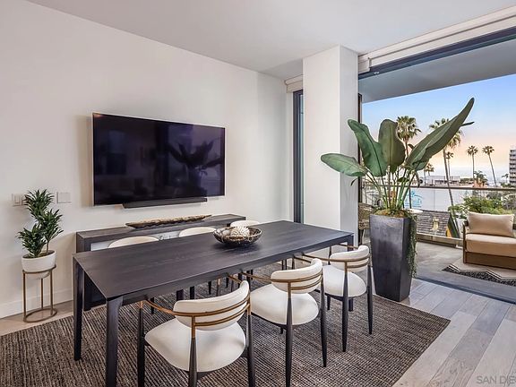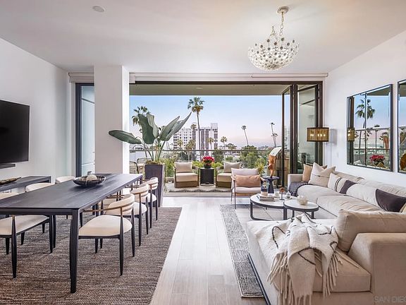 Sunlit and west-facing, this exceptional end-unit residence at 41West offers breathtaking 180-degree views of the bay, ocean, and downtown. Thoughtfully designed with 10-foot ceilings, the open concept living space seamlessly extends onto a spacious terrace with Nanawall doors, creating an unparalleled indoor-outdoor experience. Its well-designed floor plan offers split bedrooms and baths for ideal privacy. Recent tasteful upgrades enhance the warmth and functionality, including custom wood accents, built-in desk, and designer lighting. The primary suite features a customized walk-in closet, spa-inspired bath with 6-foot soaking tub, separate shower, bidet, and heated towel rack. The kitchen is a chef’s dream, equipped with Miele appliances, Italian cabinetry, quartz countertops, and wine fridge. Set in one of Bankers Hill’s most exclusive boutique buildings with just 41 residences, 41West offers luxury amenities, including front desk attendant from 7am to 11pm, off site security monitoring from 11pm to 7am, resident lounge with Full Swing golf simulator, fitness center, and pet-washing spa. This unit includes two side-by-side parking spaces and storage. With Balboa Park at your doorstep and an array of restaurants, boutiques, coffee houses, and fitness studios just moments away, 41West is more than a home—it’s a lifestyle.