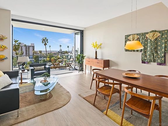 Welcome to 41West where Balboa Park is at your doorstep, city views & bay views at your fingertips, and luxury at every turn—This rare west-facing 6th-floor unit offers the best of sophisticated urban living.  Step inside and let the 10-foot ceilings and open-concept design wow you. The nano-wall doors glide open effortlessly, extending your living space onto a generous patio with breathtaking western views—Point Loma, downtown, the bay, and beyond. See Supplement: