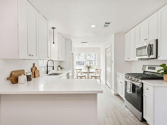 Fully renovated in 2025, this single-story corner-lot ranch delivers move-in-ready style, space, and convenience in Kings Row. Bright, flexible 4-bed, 2.5-bath layout with an optional 5th bedroom or office, formal living/dining with a fireplace family room for effortless entertaining. The reimagined kitchen offers all-new cabinetry, sleek counters, a breakfast bar, and pantry; a nearby breakfast area keeps everyone connected. Private bedroom wing includes a roomy primary suite and refreshed bathroom. Set on 0.33 acres with mature trees—plenty of room to play, garden, or add future amenities. Side-entry 2-car garage and indoor utility with half bath. No mandatory HOA. Zoned to Alvin ISD and minutes to schools, shopping, dining, and major routes. Fresh, functional, and ready now—schedule your private tour today.