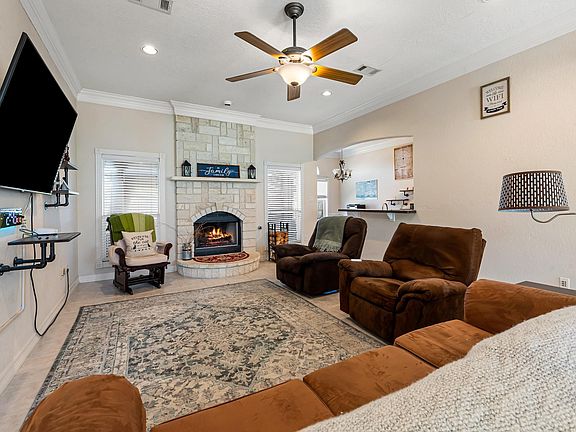 Welcome home to this thoughtfully designed residence featuring a split-bedroom floor plan with raised ceilings, tile flooring in main living areas, and cozy carpet in bedrooms. The spacious living room centers around a warm fireplace, while the kitchen overlooks the living space and offers ample counter space, an eating bar, pantry, and sunny breakfast room—ideal for daily living and entertaining. The primary suite provides a relaxing retreat with a whirlpool tub, walk-in shower, and large walk-in closet. Step outside to your private backyard oasis with a patio, pergola, fire pit area, above-ground pool, and storage shed—plus no back neighbors! Perfect for BBQs or peaceful evenings under the stars. Residents of Austin’s Colony enjoy convenient access to schools and Austin’s Colony Park, featuring tennis and basketball courts, playgrounds, sports fields, BBQ grills, disc golf, sand volleyball, an archery range, and more.