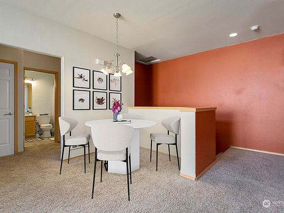 The Northwest Landing community is cute as a button! You've got the best of both worlds with this top-floor end unit. High vaulted ceilings and an open floor plan create a spacious living space. The roomy primary bedroom with walk-in closet and ensuite bath provides a special getaway. In unit laundry and a one-car garage gives you the convenience you've been looking for. The private deck off the living room is the perfect space to put your feet up at the end of the day. The ample storage and well equipped kitchen makes this move-in ready! Virtual staging.