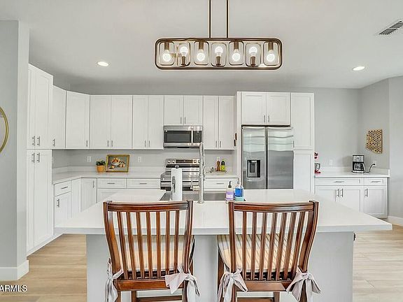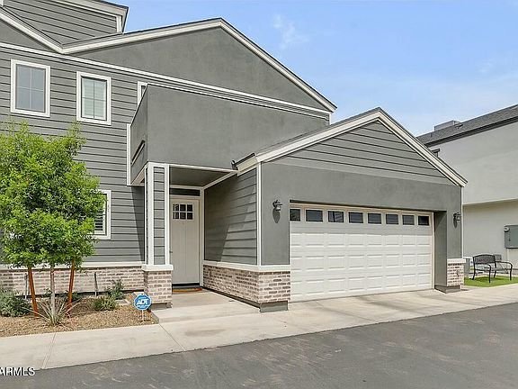 Highly upgraded, modern farmhouse home has everything you're looking for including high ceilings, quartz countertops in kitchen and bathrooms, soft-close white shaker cabinets, farmhouse kitchen sink, wood-look tile flooring downstairs, plush carpet upstairs, separate soaking bathtub and glass shower in the primary bath, and large primary walk-in closet!! Balcony off of the 2nd bedroom, and 2 car attached garage! Tankless hot water heater, foam insulation, and solid wood doors throughout. Fabulous backyard including pavers, garden planter, and turf! Private/GATED community with heated pool and park. Come see this beautiful home in a wonderful boutique community, located south of the Biltmore, centrally located near many fabulous restaurants and Freeways!! Like new, built in 2023!!