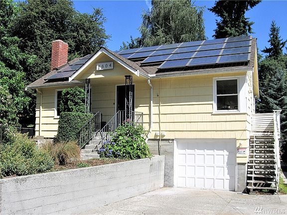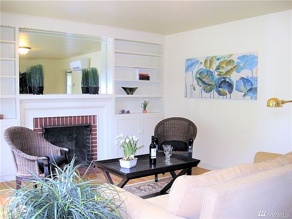 Charming in-city living, in quiet Olympic Hills. Great space for multi generational living w/guest quarters, or vacation rental, or separate rental apt. Flexible lower level could be one or two bedroom unit. Apartment has its own washer/dryer. All appliances to stay. Solar system pays you back on this all electric, energy efficient home! Nice built-ins, beautiful hardwood floors, wood fireplace, some double pane windows and updated appliances. Large corner lot with drought resistant landscaping.